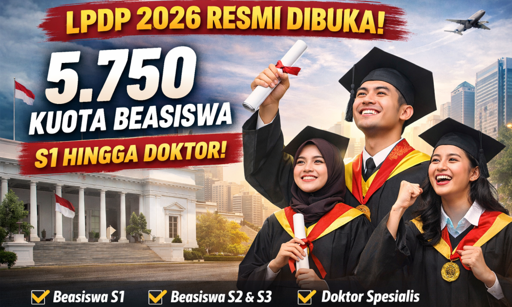 Kuota beasiswa Lembaga Pengelola Dana Pendidikan (LPDP) tahun 2026 resmi disiapkan pemerintah. Menteri Pendidikan Tinggi, Sains, dan Teknologi (Mendikti Saintek) Brian Yuliarto menyampaikan bahwa jumlah penerima beasiswa LPDP tahun depan mencapai 5.750 orang.