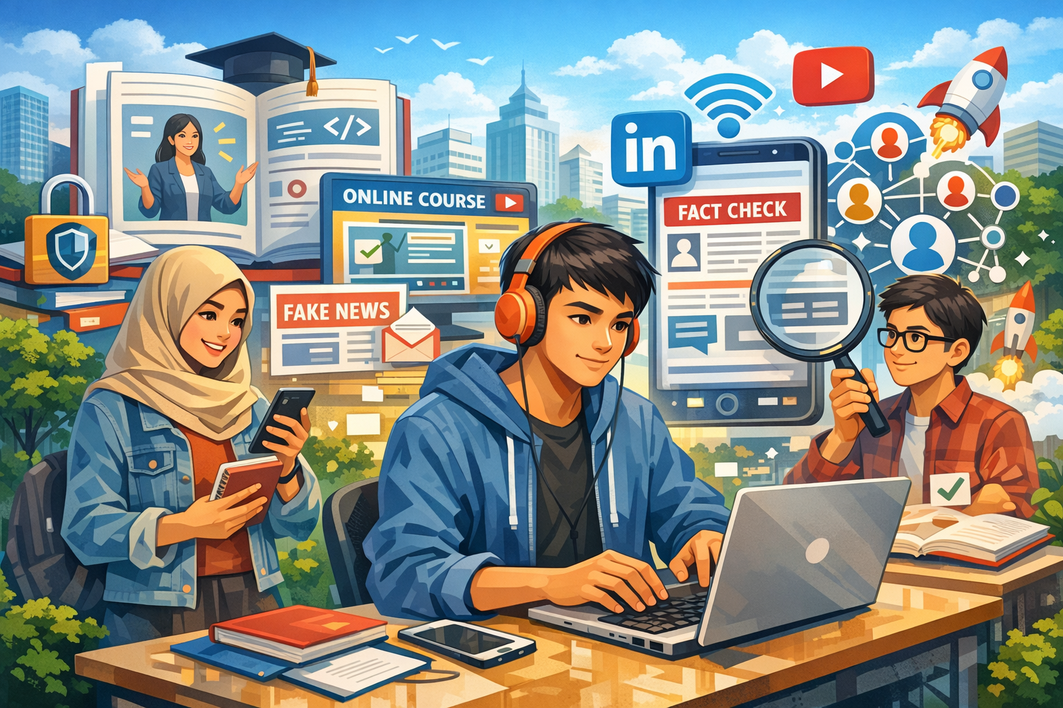 Selain kemampuan teknis, kecakapan informasi juga memegang peranan penting. Mahasiswa perlu terampil dalam mencari, menyaring, dan memverifikasi informasi dari sumber tepercaya. Sikap anti-hoaks dan kebiasaan memeriksa ulang kebenaran informasi sebelum digunakan atau dibagikan merupakan bagian dari literasi digital yang harus dibangun sejak dini.
