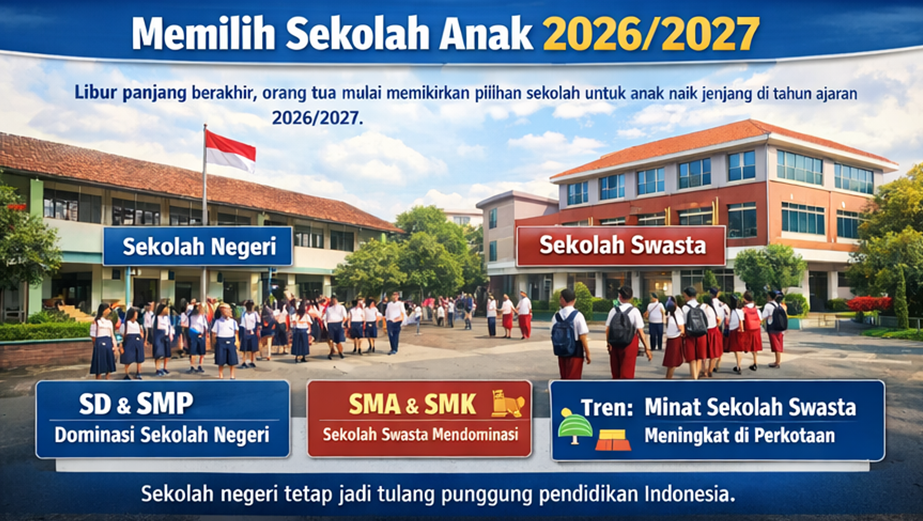 Libur panjang anak sekolah di berbagai daerah di Indonesia telah berakhir. Orang tua dan murid pun kembali disibukkan dengan rutinitas kegiatan belajar mengajar. Meski Januari bukan awal tahun ajaran baru dalam sistem pendidikan nasional, periode ini justru menjadi momentum bagi banyak orang tua untuk mulai memikirkan sekolah mana yang akan dipilih jika anak mereka naik jenjang pada tahun ajaran 2026/2027 yang dimulai sekitar Juni atau Juli.